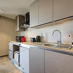 L'appartement dispose d'une cuisine entièrement équipée, ainsi que de conforts tels qu'une climatisation.